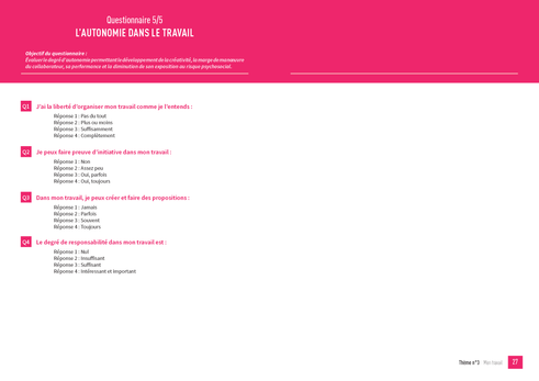 j'ai réalisé le guide utilisateur et le catalogue des questionnaires, en intégrant l'environnement graphique du produit SPEAK'UP et du groupes HPI.